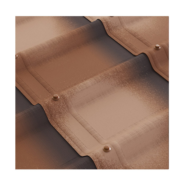 Черепица Ондувилла Фиорентино окрашена в 4 слоя: грунтовочная окраска плюс три декоративных слоя, которые защищают кровлю от выгорания.